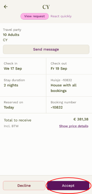 Would you like to contact the guest first? Then click on ‘Send a message’.