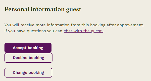 Only after you have approved the booking as a landlord, you can view the contact details of the guest. Would you still like to ask something before you approve the booking? Here you will find out how: