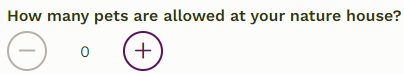 Again, use the 'minus' or 'plus' sign to indicate how many pets are welcome in your nature house.