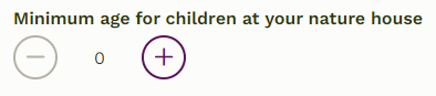 Again, use the 'minus' or 'plus' sign to indicate what the minimum age has to be of the children that are welcome in your nature house.
